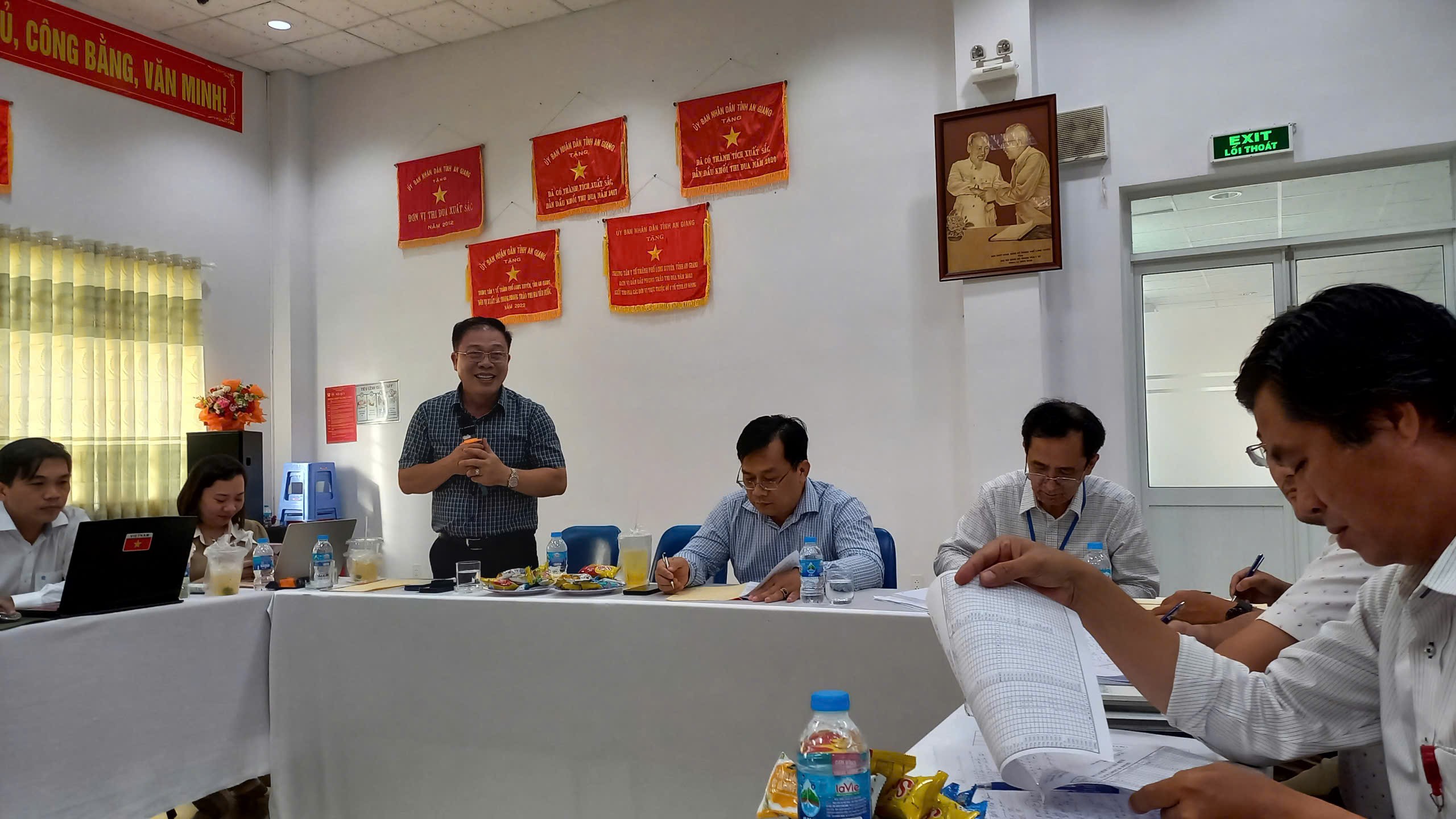 Vừa qua, Đoàn kiểm tra của Sở Y tế tỉnh An Giang do ông Chung Tấn Thịnh – Phó Giám đốc Sở Y tế làm Trưởng đoàn, cùng ông Trần Thế Vinh – Giám đốc Trung tâm Kiểm soát bệnh tật tỉnh (CDC An Giang) làm Phó Trưởng đoàn, đã đến làm việc tại Trung tâm Y tế Long Xuyên.