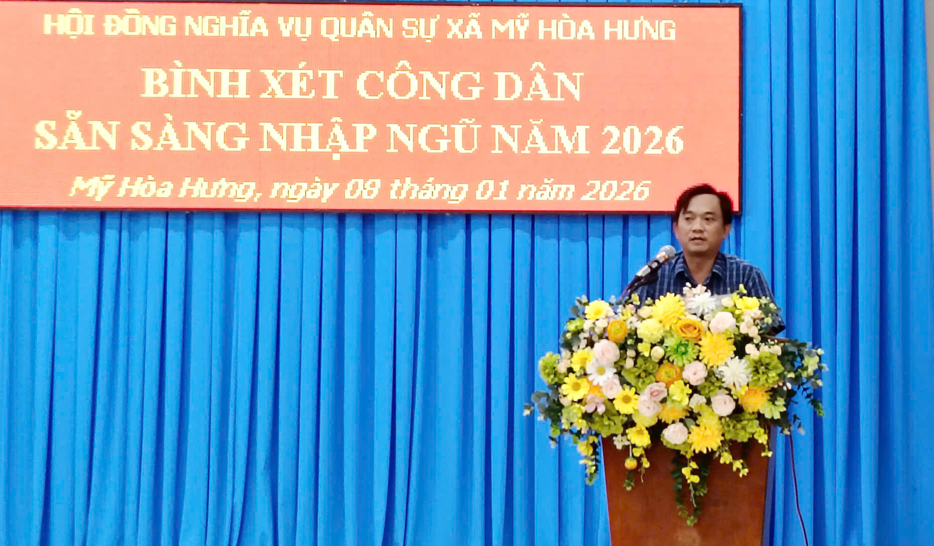 HỘI ĐỒNG NGHĨA VỤ QUÂN SỰ XÃ MỸ HÒA HƯNG TỔ CHỨC HỘI NGHỊ BÌNH XÉT CÔNG DÂN ĐỦ ĐIỀU KIỆN THỰC HIỆN NGHĨA VỤ QUÂN SỰ NĂM 2026