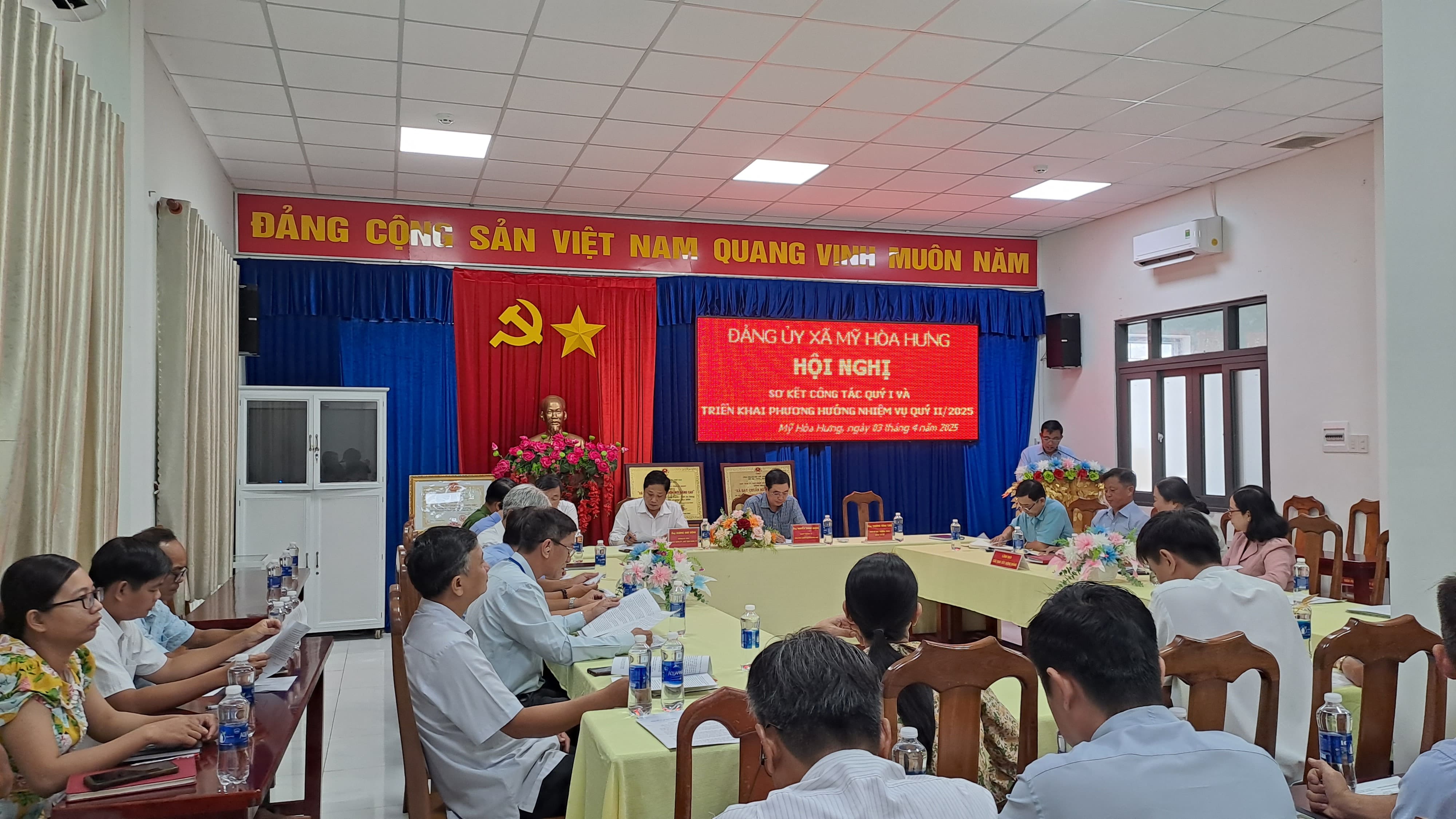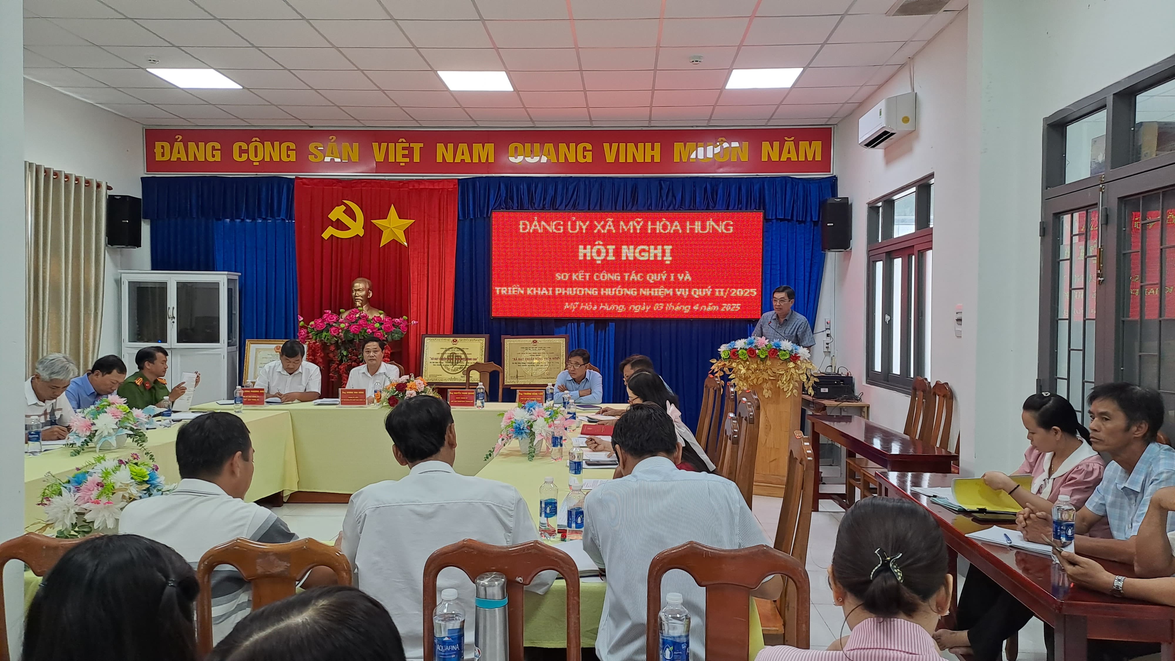 Trong quý I, Đảng ủy xã Mỹ Hòa Hưng đã triển khai thực hiện Nghị quyết đúng theo kế hoạch, đạt các chỉ tiêu phát triển kinh tế - xã hội, quốc phòng - an ninh và xây dựng hệ thống chính trị. Cụ thể, trong sản xuất nông nghiệp, đã chuyển đổi 353 ha đất lúa sang trồng rau màu, cây ăn trái, đạt 70% kế hoạch. Xã đã hoàn thành báo cáo và hồ sơ để xét công nhận đạt chuẩn nông thôn mới kiểu mẫu. Các hoạt động văn hóa, xã hội và an sinh xã hội được thực hiện hiệu quả, vận động quỹ xã hội từ thiện hơn 1 tỷ đồng. An ninh trật tự được giữ vững, công tác tuyển quân hoàn thành 100% chỉ tiêu. Hệ thống chính trị được củng cố, nâng cao năng lực lãnh đạo của tổ chức Đảng và đảng viên. Mặt trận và các đoàn thể hoạt động ngày càng hiệu quả, nhân dân tin tưởng và chấp hành tốt chủ trương của Đảng, chính sách, pháp luật của Nhà nước.