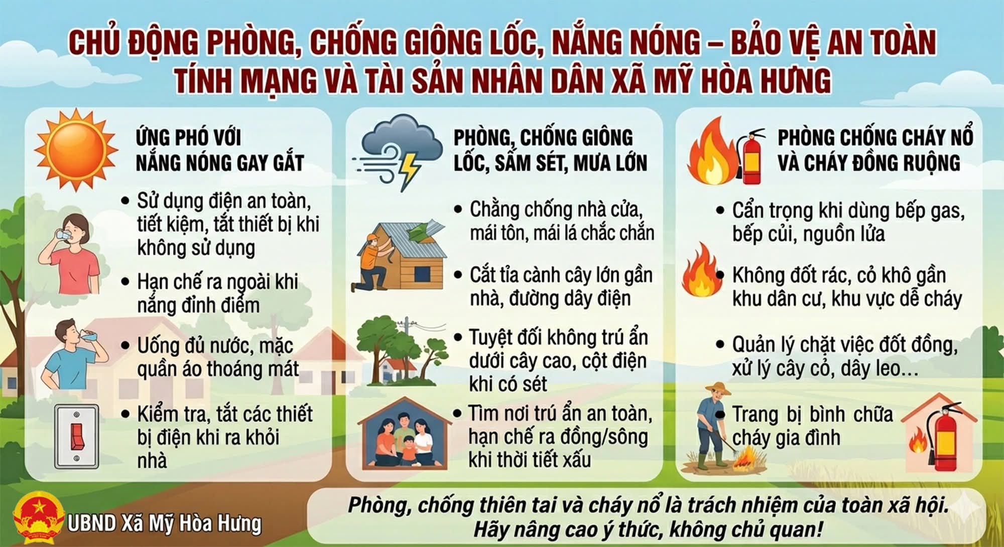 CHỦ ĐỘNG PHÒNG, CHỐNG GIÔNG LỐC, NẮNG NÓNG - BẢO VỆ TÍNH MẠNG VÀ TÀI SẢN NHÂN DÂN XÃ MỸ HÒA HƯNG