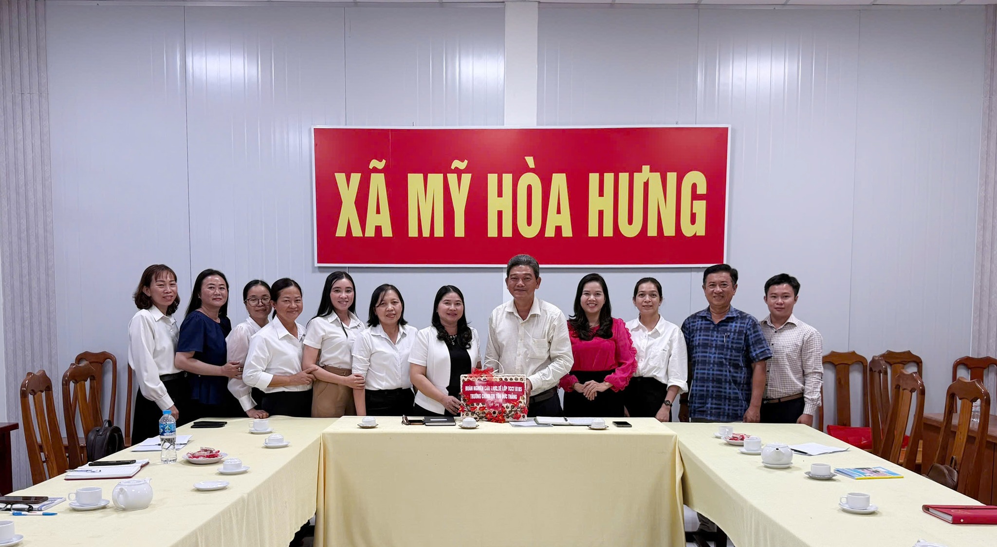 Tham dự buổi làm việc có giảng viên, học viên lớp Trung cấp Lý luận chính trị B185 cùng đại diện các đơn vị liên quan. Tiếp và làm việc với đoàn có ông Nguyễn Trung Nam – Phó Chủ tịch UBND xã Mỹ Hòa Hưng.
