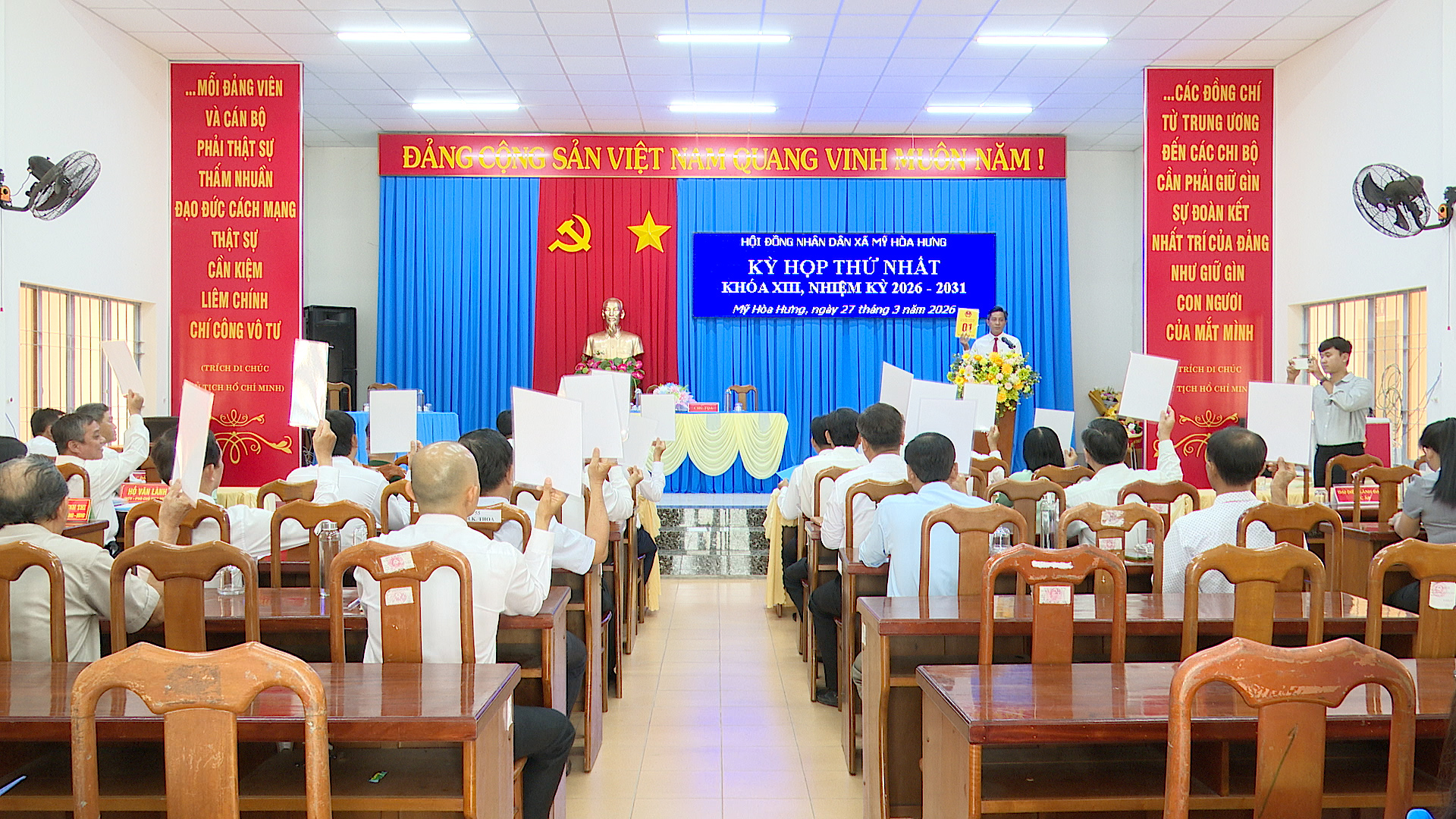 Chiều ngày 27/03, HĐND xã Mỹ Hòa Hưng tổ chức Kỳ họp thứ Nhất khóa XIII, nhiệm kỳ 2026-2031 nhằm kiện toàn tổ chức bộ máy chính quyền địa phương và quyết định nhiều nội dung quan trọng, tạo tiền đề cho việc triển khai các nhiệm vụ phát triển kinh tế - xã hội trong nhiệm kỳ mới. Đồng chí Võ Minh Tuấn, Bí thư Đảng ủy, Chủ tịch HĐND xã khóa XII, nhiệm kỳ 2021-2026 chủ tọa kỳ họp.