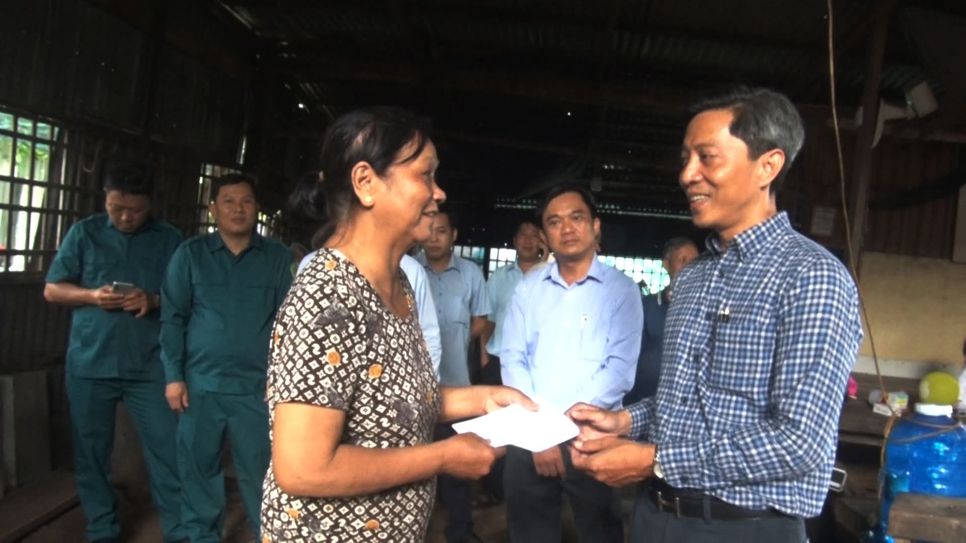 LÃNH ĐẠO XÃ MỸ HÒA HƯNG THĂM, ĐỘNG VIÊN GIA ĐÌNH BỊ TỐC MÁI NHÀ DO MƯA GIÔNG