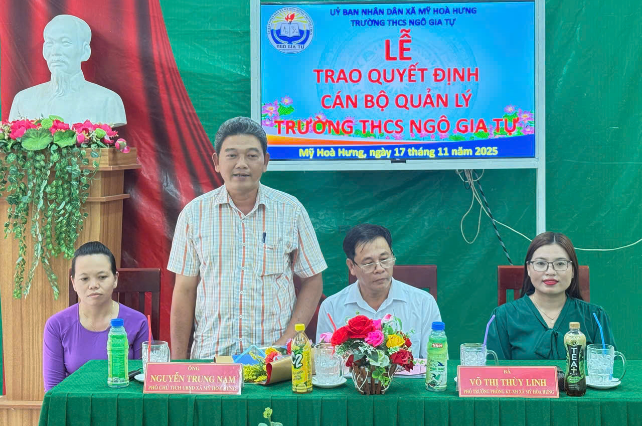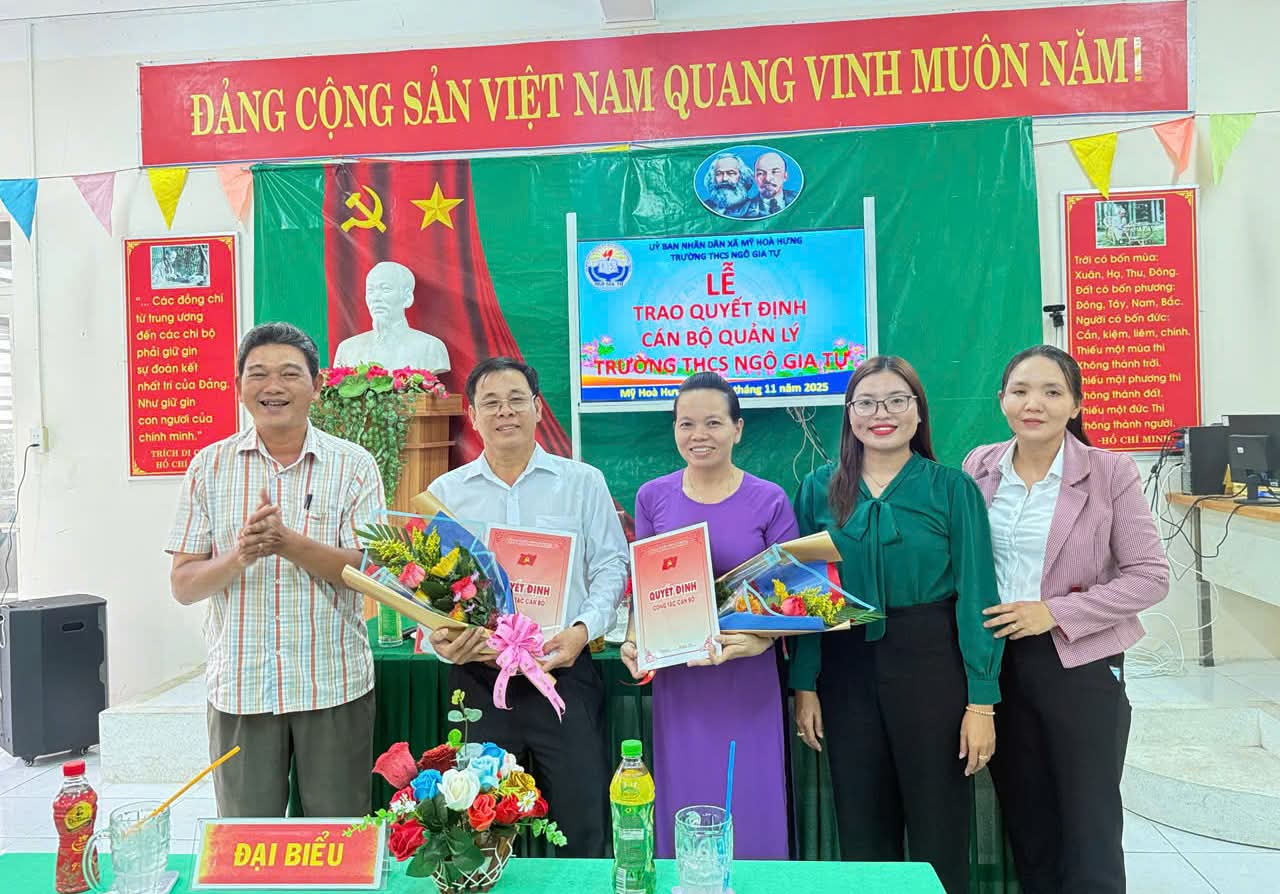 LÃNH ĐẠO XÃ MỸ HÒA HƯNG TRAO QUYẾT ĐỊNH BỔ NHIỆM TẠI TRƯỜNG THCS NGÔ GIA TỰ