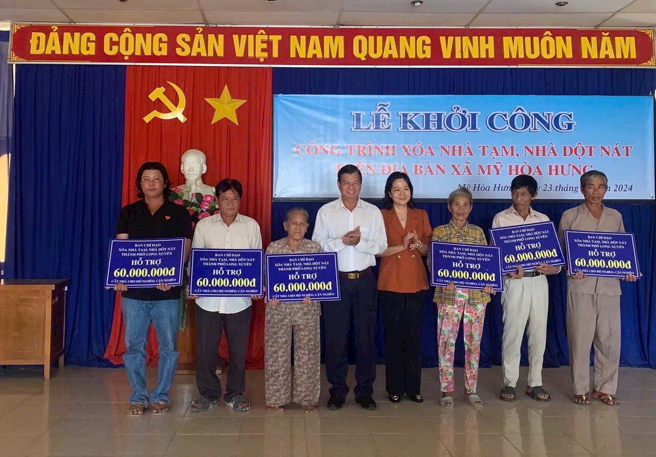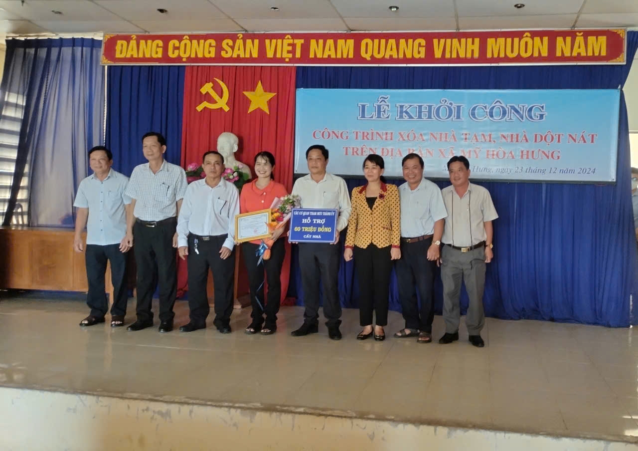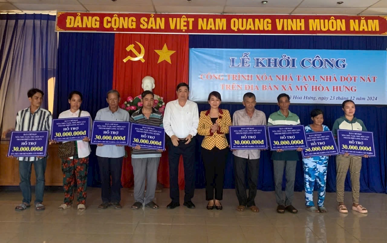 Chiều ngày 23/12/2024, Ban Chỉ đạo xóa nhà tạm, nhà dột nát thành phố Long Xuyên và Ban Chỉ đạo xã Mỹ Hòa Hưng tổ chức lễ khởi công công trình xóa nhà tạm, nhà dột nát trên địa bàn xã Mỹ Hòa Hưng.