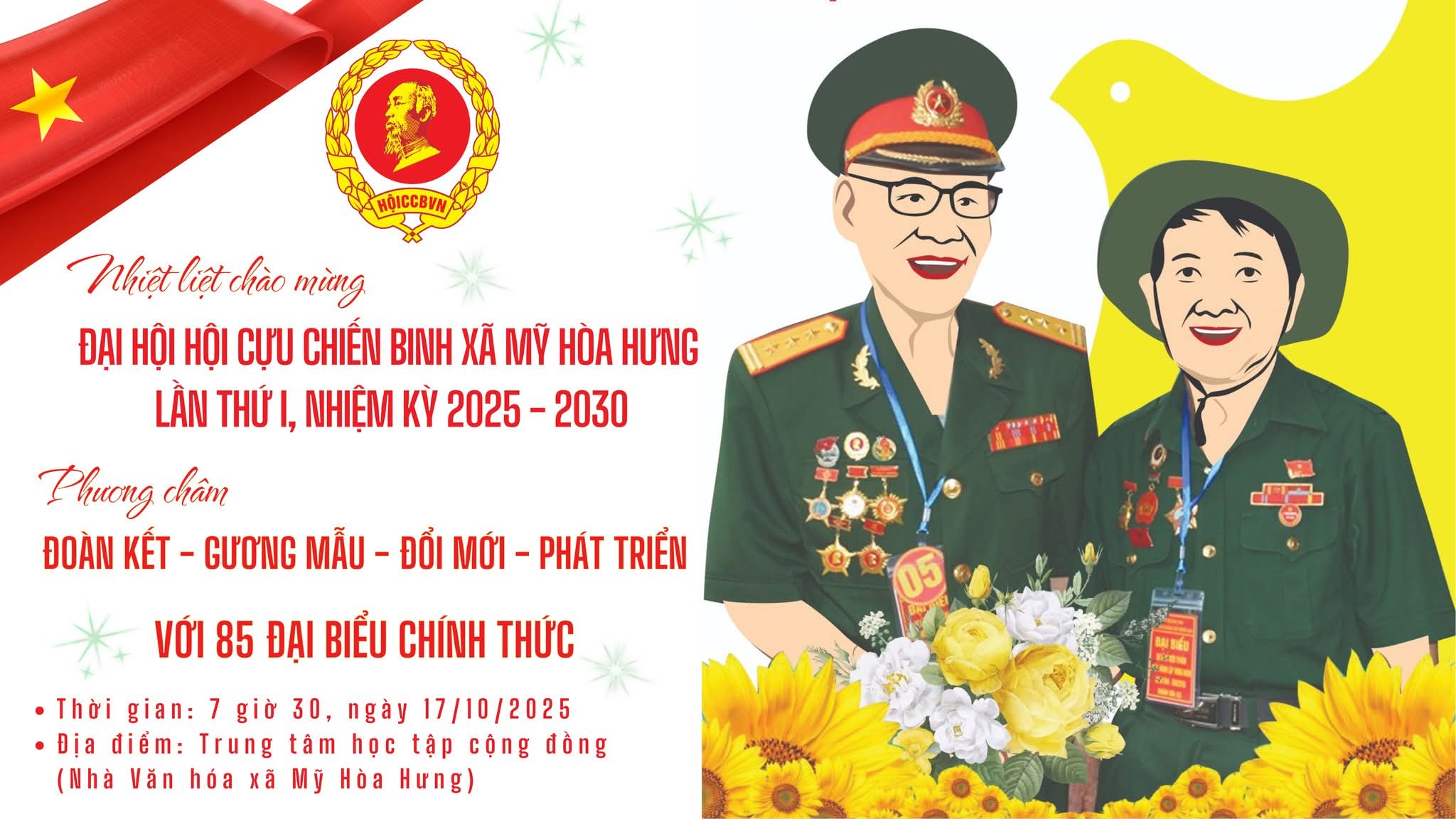 NHIỆT LIỆT CHÀO MỪNG ĐẠI HỘI HỘI CỰU CHIẾN BINH XÃ MỸ HÒA HƯNG LẦN THỨ I, NHIỆM KỲ 2025 - 2030