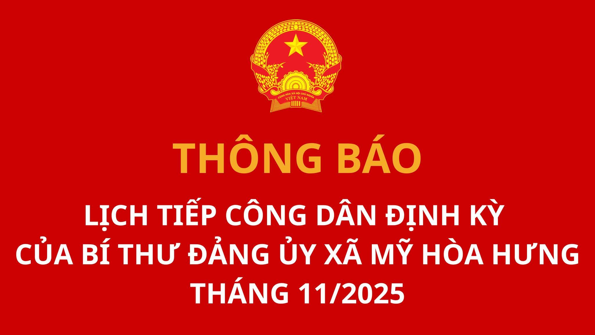 THÔNG BÁO LỊCH TIẾP CÔNG DÂN ĐỊNH KỲ CỦA BÍ THƯ ĐẢNG ỦY XÃ MỸ HÒA HƯNG THÁNG 11/2025