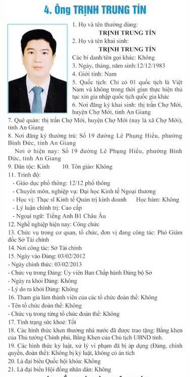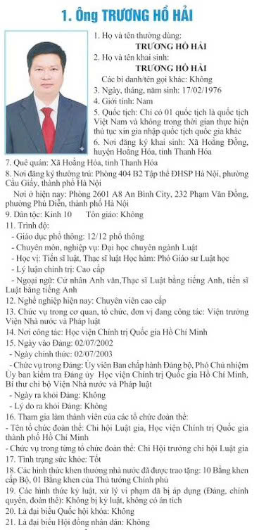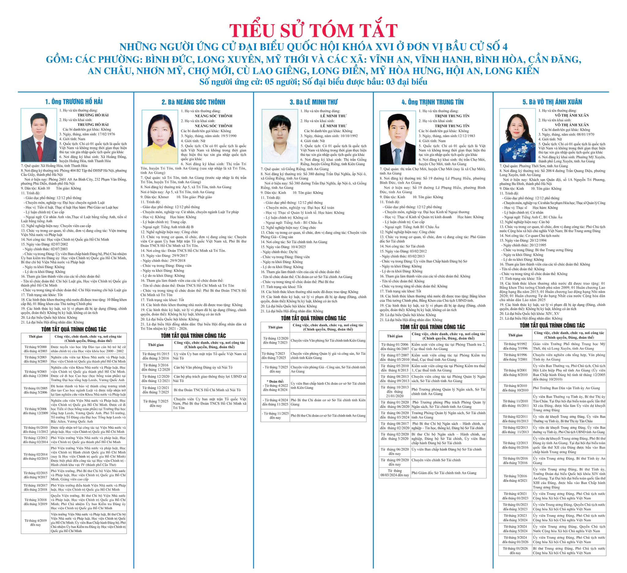 Về tiểu sử tóm tắt người ứng cử đại biểu Quốc hội khóa XVI tại Đơn vị bầu cử số 4 gồm 3 phường và 12 xã