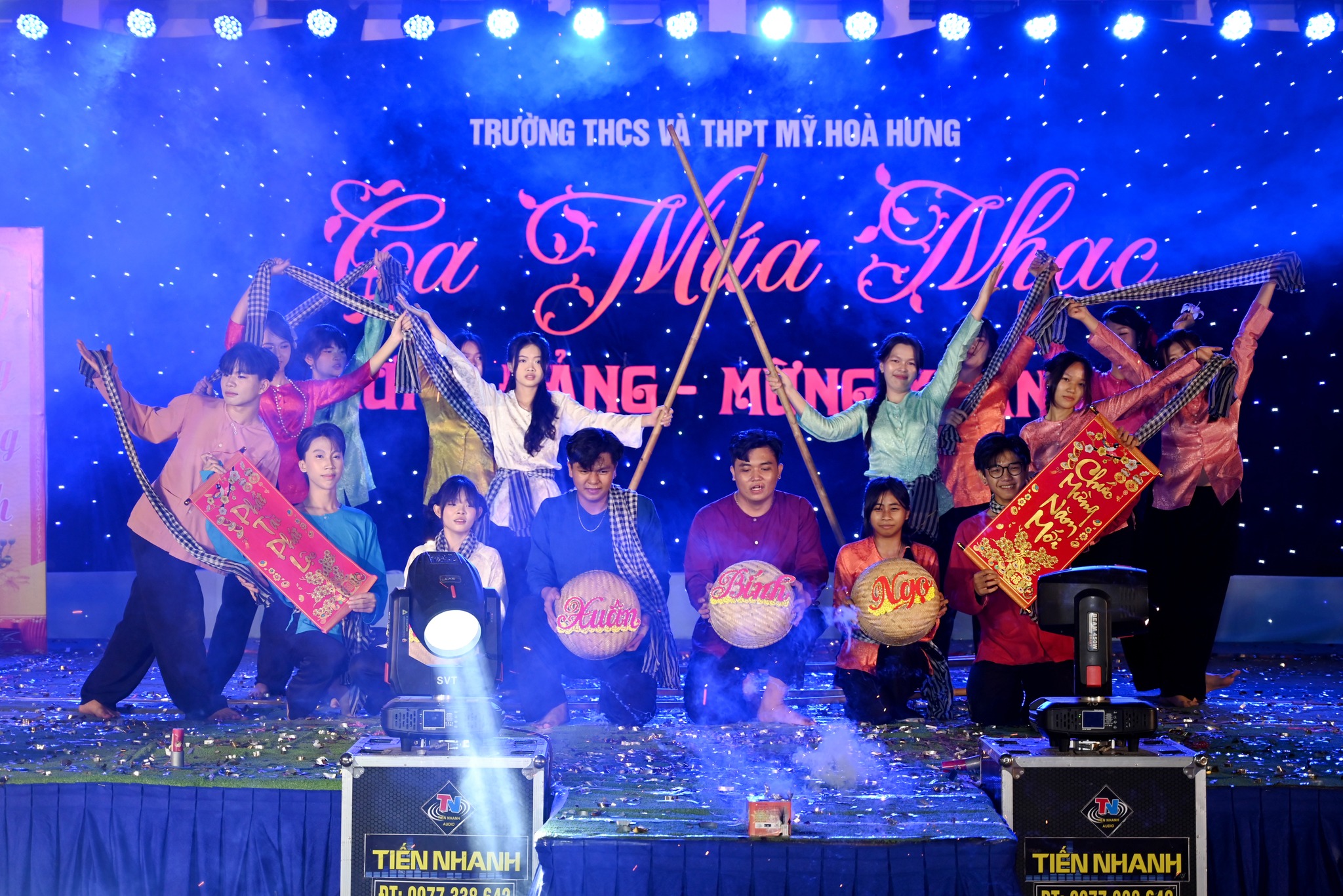 TRƯỜNG THCS VÀ THPT MỸ HÒA HƯNG TỔ CHỨC ĐÊM VĂN NGHỆ MỪNG ĐẢNG, MỪNG XUÂN 2026 VÀ TRAO QUÀ CHO HỌC SINH