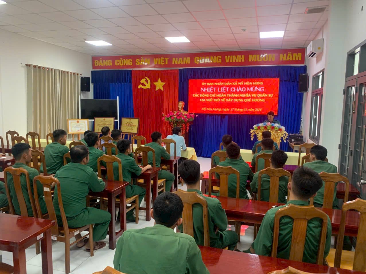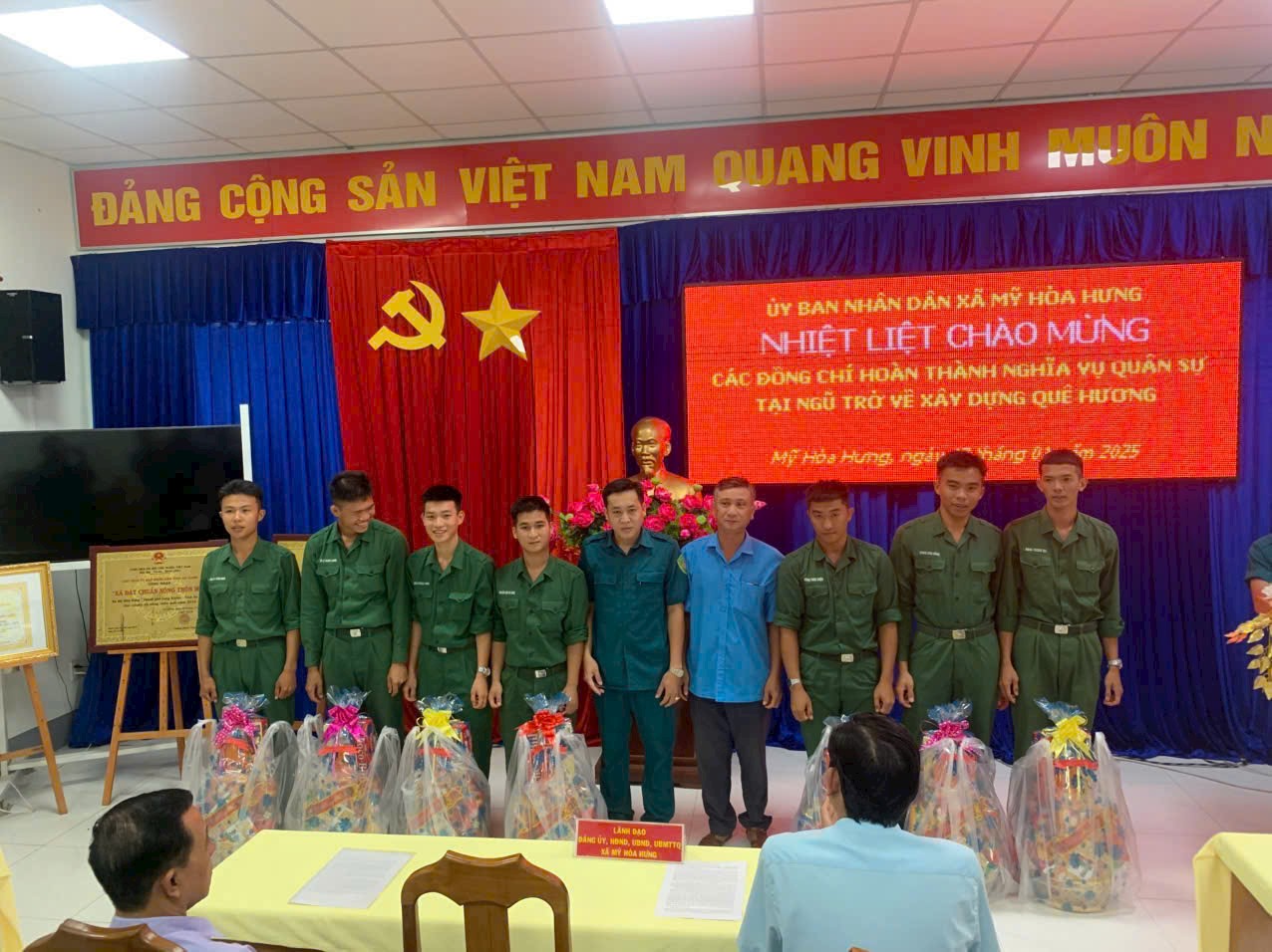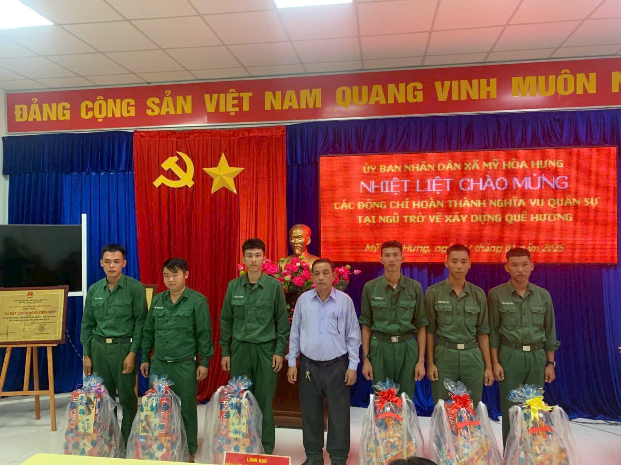 XÃ MỸ HÒA HƯNG TỔ CHỨC CHÀO MỪNG QUÂN NHÂN XUẤT NGŨ TRỞ VỀ ĐỊA PHƯƠNG
