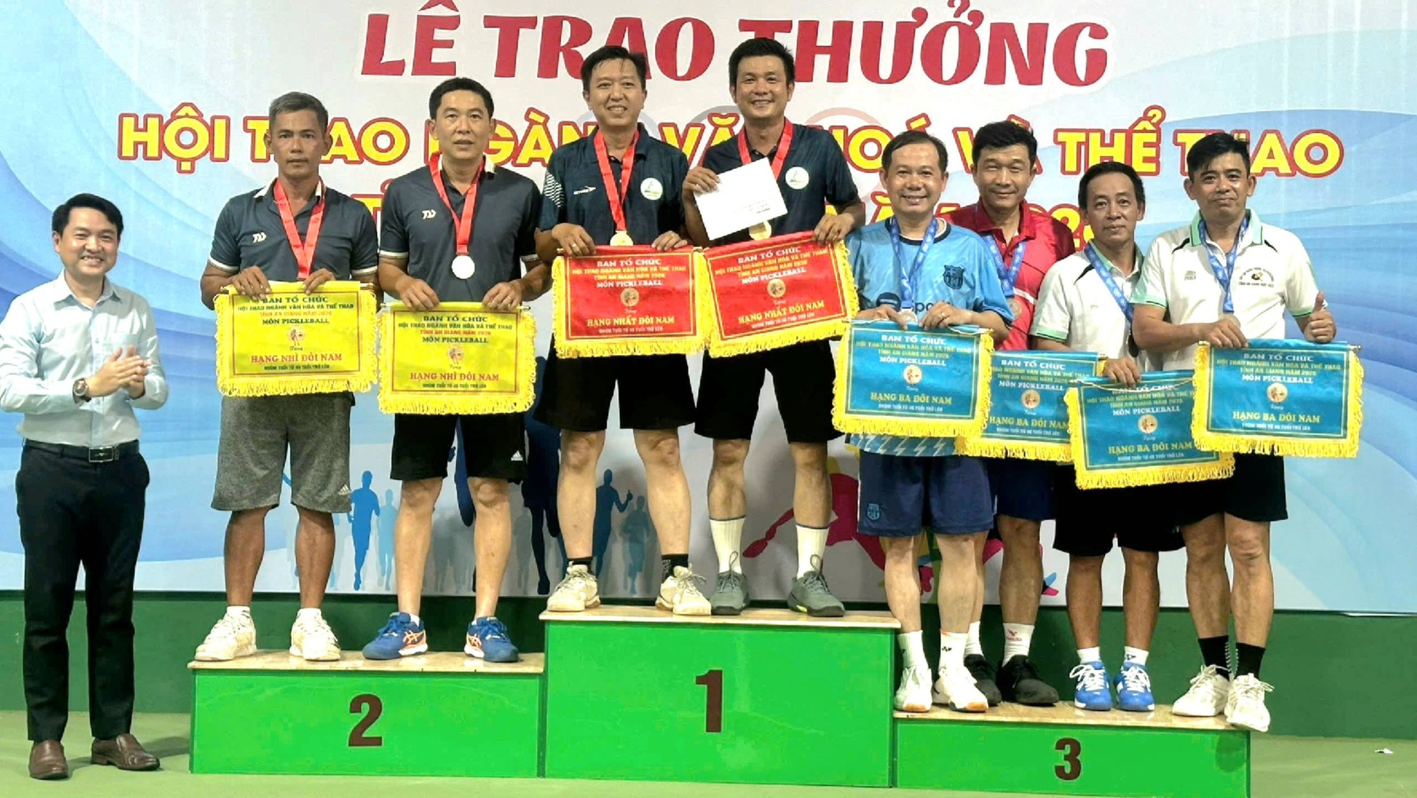 Tham gia hội thao, đoàn vận động viên xã Mỹ Hòa Hưng đã thi đấu nỗ lực, thể hiện quyết tâm cao và xuất sắc giành giải ba môn Pickleball ở nội dung đôi nam.